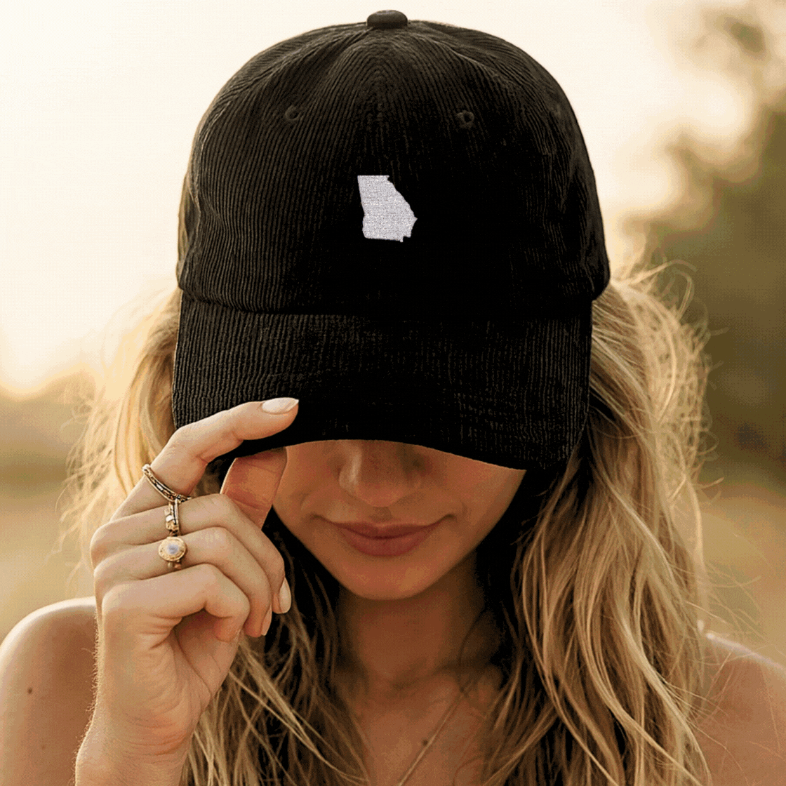 A soft vintage-style corduroy hat available in four colors and embroidered with your state outline. Minimalist, comfy, and perfect for everyday wear, game days, or gifting someone settling into a new place.